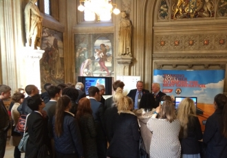 We have just completed a week's exhibition in Parliament – trying to get the MPs to understand what Bloodhound is about and to realise the importance of getting their constituency schools and manufacturers involved. It seems that previous parliamentary exhibitions tend to be passive and consist of banners and handouts. By contrast of course, Bloodhound was shared with our sponsors IMechE and was highly active with our ambassadors and BET team taking part . The big draw was the Bloodhound Driving Experience – with all the MPs challenging for fastest time – and of course setting out to to beat the Chancellor George Osborne’s score of 1007.30 mph . A highly competitive challenger was Science Minister David Willetts with a very creditable 1013.00 mph. But the fastest parliamentary record was 1024.80 mph by MP Jack Lopresti. That will take some beating by our parliamentary friends !